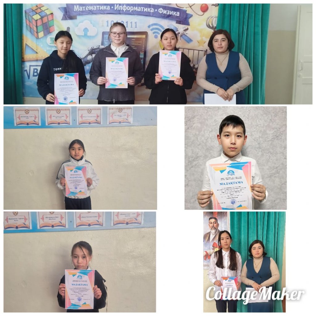 5-6,7-8 сыныптар оқушылары арасындағы республикалық олимпиадасының аудандық кезеңінде: 5-сынып оқушысы Аблайхан Ақниет-ІІІ орын математика пәнінен,6 -сынып оқушылары Абдильман Дидар -ІІІ орын математика пәнінен,Муханбеткали Аянат-ІІІ орын орыс тілі пәнінен,7-сынып...